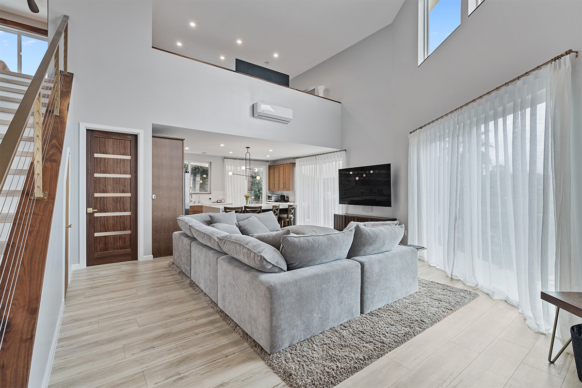 The open-concept living area is perfect for entertaining, featuring a gourmet kitchen with stainless steel appliances, a spacious living room.
